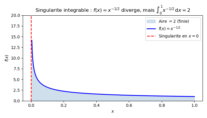 # Singularité en x=0 : f(x) = 1/sqrt(x)